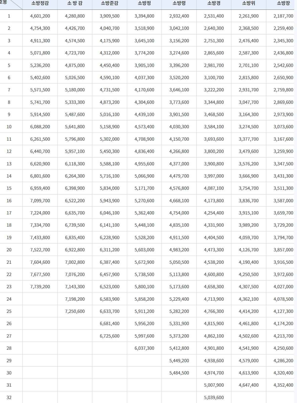 소방공무원 계급과 연봉 총정리 소개 해드리겠습니다.